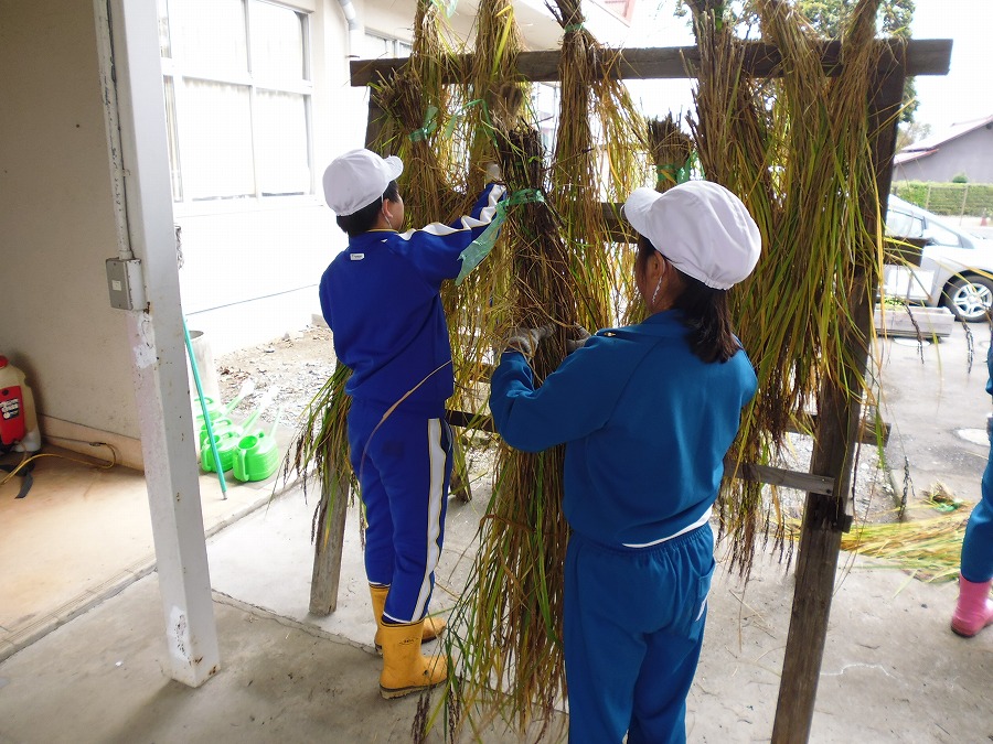 5年生と6年生が古代米の収穫をしました。西小の古代米作りは、自分たちで田んぼを作って、田植え、草取り、稲刈り、脱穀、おだがけ、そして試食まで、全部子供たちの手で行います。おコメ作りのすべての過程を体験学習する「西小ならではの学習」です。
