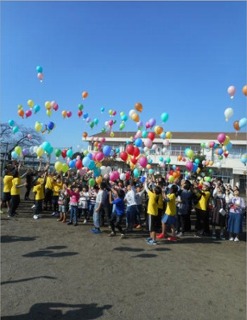 10月27日(土)に、最後の西小まつりを行いました。ご家族の皆様や地域の皆様がたくさん参加してくださいました。画像は、閉校記念事業の風船飛ばし「西小たんぽぽ 天まで届け」の様子です。