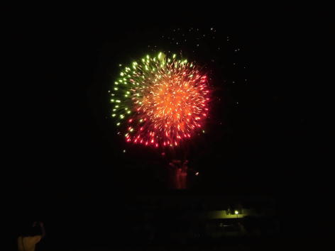 (画像は、打ち上げ花火と花火を見て歓声を上げている子ども達です)