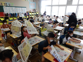 下野市の小中学校では、「新聞の日」として、新聞を活用した学習を行う機会があります。9月14日(火)は、今年度2回目の「新聞の日」でした。全学級・全児童に「こども新聞」が配付され、全学級で、自分の関心をもった記事を切り取り、感想等を書く活動を行いました。2回目の活動でもあり、子どもたちは、意欲的に手際よく活動を進めていました。