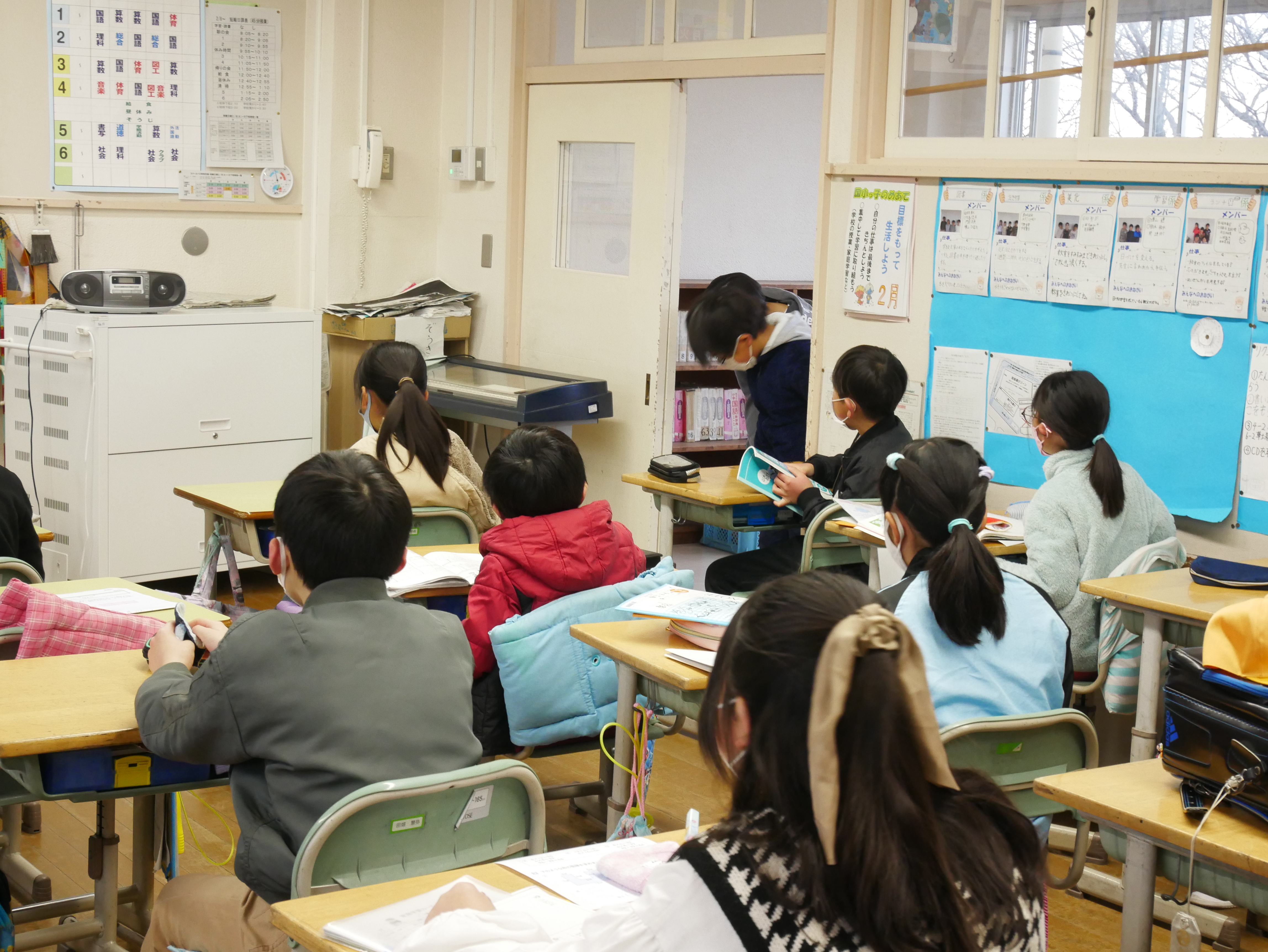 3月24日(木)は、今年度最後の授業日、修了式の日でした。修了式は、代表者・関係者が一室に集まり、修了証書授与(各学級代表児童)や学年発表(3年、4年代表児童)、校長の話などを行い、その様子をオンラインで全児童が各教室で視聴しました。1年間の学習や生活を振り返り、春休みに新学年の目標を立ててほしいと思います。