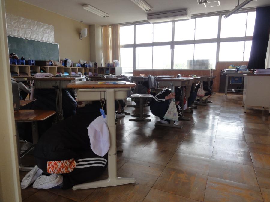 中休みに、今年度1回目の避難訓練を実施しました。今回は、地震が起き給食室から火災が発生したという設定で行いました。地震が起きたら、すぐに机の下にもぐるというのは、どのクラスもよくできていました。避難経路を確認し、「おかしも」を守り、1回目としてはよくできた避難訓練でした。
