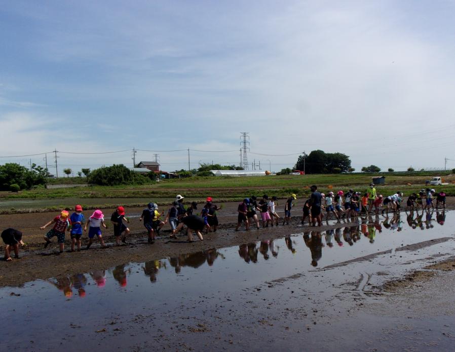 5年生は、総合的な学習の時間に「米作りに挑戦しよう」という探求学習をしています。そこで、自分の課題追求のために、種籾まきから体験を行い、苗を田んぼに植えました。学校支援ボランティアの楡木さんが植え方を教えてくださいました。5年生の保護者の皆さんもボランティアとしてたくさん来てくださいました。