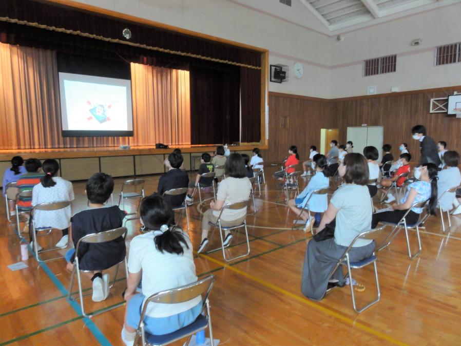 中休みに、夏休み前の集会をzoomで行いました。ここまでの生活や行事を振り返り、今年の夏休みのテーマについて話しました。子供たちは教室で、ときには呼びかけに反応しながら、真剣に聴いていました。保護者の皆様、地域の皆様、日々の教育活動にご協力とご支援をいただき、ありがとうございました。夏本番、暑さも厳しくなります。お体に気をつけて、お過ごしください。9月1日(水)に、笑顔いっぱいの子供たちに会えることを楽しみにしています。