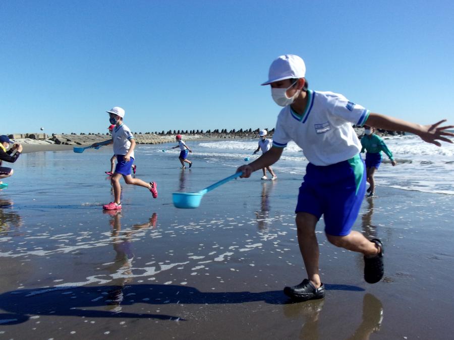 5年生が2泊3日の臨海自然教室に行きました。茨城県にある「とちぎ海浜自然の家」でマリンドーム作りやウォークラリー、砂の造形、ナイトハイキング、塩作り等、天候にも恵まれ全ての活動を実施することができました。砂の造形では祇園小の5年生と交流もしました。5年生の成長を感じる、立派な態度での体験活動でした。