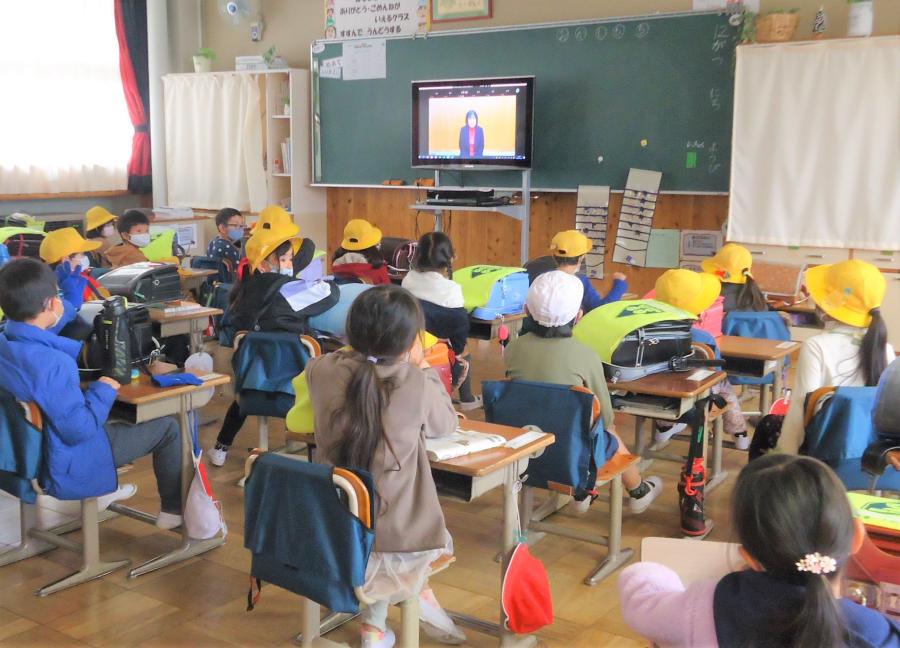 令和3年度修了式を中休みにZoomで行いました。各学年の代表児童に修了証を手渡し、代表児童の作文発表と校長先生のお話を聞きました。どの教室も静かに聞き、この1年の学びを振り返りました。修了式後、児童指導主任から春休みの過ごし方についてお話がありました。児童の皆さん、1年間、よくがんばりました。