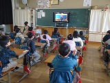 まん延防止措置期間が延長されたため、集合してではなくZoomで6年生を送る会を実施しました。5年生は、急な変更にも上手に対応し、司会・進行を立派に務めました。6年生に関するクイズや6年生の思い出映像の視聴をし、各学年から6年生にプレゼントを渡しました。6年生の教室からは笑いがあふれ、下級生は6年生からのお礼の言葉を静かに聞いていました。全校児童にとって、思い出に残るひとときとなりました。