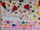 緑小には、職員室に向かう階段のおどりばのところに、掲示板「緑のひろば」があります。今は、6年生からのメッセージの飾りになっています。来校した際には、ぜひ、ご覧ください。