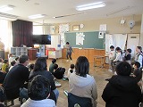 今日のがらがらどんは5,6年生。そっと教室をのぞくとみんな真剣な表情で食い入るようにボランティアの方の手元の本を見ています。穏やかな語り口やジェスチャーにみんな一気にお話の世界に引き込まれていきました。朝の心地よいひとときでした。
