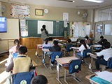 今日は月に1度ALTのグレゼル先生がやってくる日です。グレゼル先生には主に1,2年生の英語を中心に授業をしていただいています。3時間目、2年1組で何やら楽しそうな声が聞こえます。そーっと教室をのぞくと動物の写真がたくさん黒板に貼ってあります。子供たちは「What animal is it?」と一人1枚ずつ渡されたカードを持ってお友達とやり取りをしています。何回も同じ単語や言い方を繰り返すうちに自然に言えるようになっています。これからも楽しみながら英語に触れていって欲しいと思います。