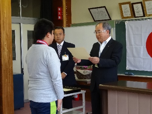 広瀬市長様、池澤教育長様をはじめたくさんの方々に見守られ、6年生15名は堂々とメダルと賞状をいただくことができました。