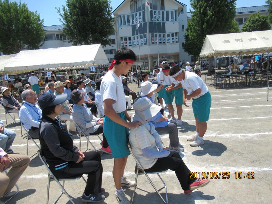 たった2週間という短い練習期間も、仲間と協力して1つずつ壁を乗り越え、迎えた当日でした。全ての演技に一生懸命に真剣に取り組んだ生徒達、多くの感動の場面があり、体育祭終了後は、スローガン『雲外蒼天』のように、晴れやかな表情でした。赤・白が互いに称え合う場面も見られ、皆で楽しんだ体育祭でした。
