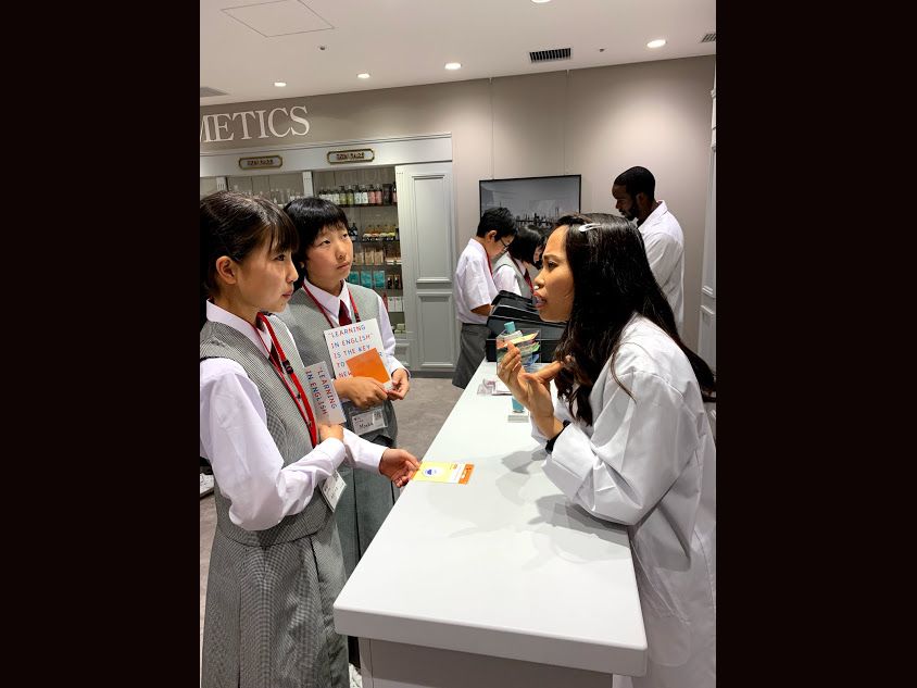 レストランや飛行機の機内等の場面が設置されており、外国にいるような空間で、一生懸命英会話に挑戦しました。グループで友達と助け合いながら体験でき、英語への関心が高まり友達との絆も深まり、充実した1日でした。