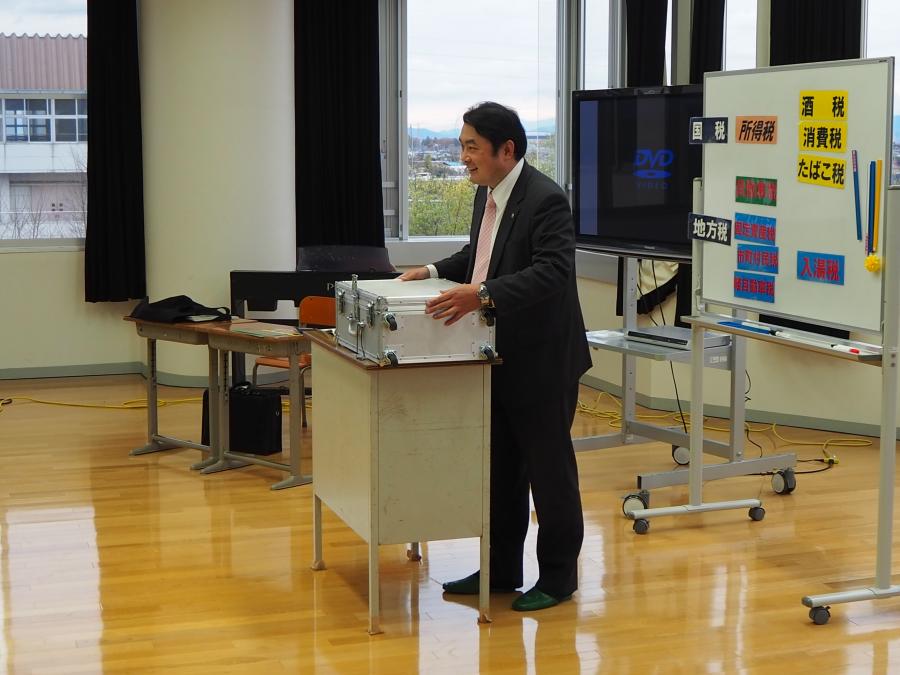 11月28日(木)、3年生対象に租税教室が行われました。「わたしたちのくらしと税金」と題して、税理士の先生の講話を聞きました。DVDや租税教室用の1億円レプリカ等を使って、わかりやすく興味深くお話しいただき、租税の役割や意義について理解が深まりました。