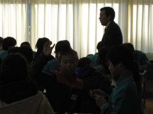 12月12日(火)、平成30年度新入生対象の保護者説明会がありました。生徒会役員による、中学校の生活の説明の後、小学生はクラスごとに別れて、1年1組の国語(薬師寺小6年1組)、1年2組の英語(〃6年2組)、2年3組の理科(吉田東小・吉田西小)の授業を中学生といっしょに体験しました。授業の先生によると中学生の方が小学生といっしょの授業を楽しんでいたそうです。授業の様子を画像で紹介します。