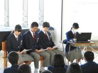 12月22日(金)、授業前の朝の時間に南河内第二中学校の生徒会本部とあいさつ運動の推進についてテレビ会議を行いました。初めての試みですが、情報機器を活用することで、移動時間をなくし他校との交流を深めることが目的です。生徒会の役員の皆さんは、初めての経験で非常に緊張したと言っていました。