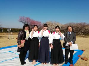 3月4日(日)、下野薬師寺歴史館で行われた下野薬師寺史跡跡まつりが行われ、2年生3名が、書道パフォーマンスに参加しました。天候にも恵まれ、暖かな日ざしの中、幼稚園児による演奏会やお囃子など様々な催しが行われました。書道パフォーマンスでは、100名を越える観衆の見守る中、「花鳥風月」の文字をリズムよく書き切りました。