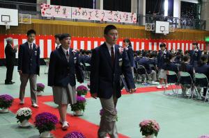 3月10日(土)、前日までの雨も上がり、春らしい天候の中、第57回卒業式を行いました。3年生のしっかりとした心構えと1,2年生の準備のおかげで感動の卒業式となりました。卒業証書授与のときから涙を浮かべている卒業生も多くいて、卒業証書を渡しながら、こみ上げてくるものがあり、我慢するのが大変でした。