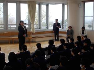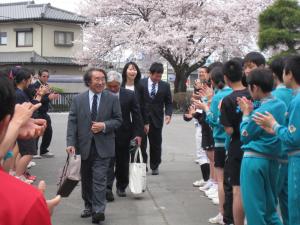 4月2日(月)、新年度が始まり、本年度、本校に勤務される先生方が、生徒達の温かい出迎えの中、赴任いたしました。勤務の関係で4名が見えましたが、他にも3名の先生が本校で勤務されます。詳しい紹介は入学式後に7名そろってからいたしますが、赴任の様子を紹介します。