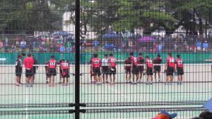 本日実施予定の野球部の試合は明日に順延になりましたが、ソフトテニス部男子団体の試合が予定どおり実施されました。結果はベスト8でしたが、体育祭等で練習時間も限られていた中、元気なプレイと大声での応援が印象に残りました。明日の個人戦での健闘を期待します。