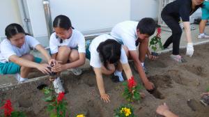 6月4日(月)、梅雨入り前の晴天という絶好の天候のもと、花植えを行いました。校舎の大規模改修の関係で花壇が例年の半分しか使用できない状態でしたが、生徒は熱心に、そして楽しげに花植えを行っていました。また、花壇が限られている関係で、3年1組と3組は学校近辺の美化活動を行いました。今後も校外での活動を進められたらと思います。
