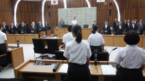 下野市の第2回中学生議会が開催されました。これは、市内4中学校の中学生に中学生議員となってもらい、議会として市に質問や要望を発表する取り組みです。普段は入ることのできない議場に入り、市長や教育長、市の各部の部長さん方の見守る中、堂々と質問を行っていました。南河内中からは、市のPR作品「サクラノチカイ」の活用についてと地震対策についての質問がでました。