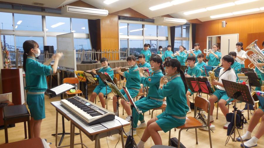 10月5日(金)、前期終業式の日ですが、生徒は欠席も少なく落ち着いて授業に臨んでいます。今週は合唱コンクールの練習が昼休みや放課後に、いろいろな場所で工夫して行われています。授業とは違った活気のある姿が見られます。合唱コンクールの様子はこのあとも随時紹介していきます。吹奏楽部の練習も熱が入ってきました。