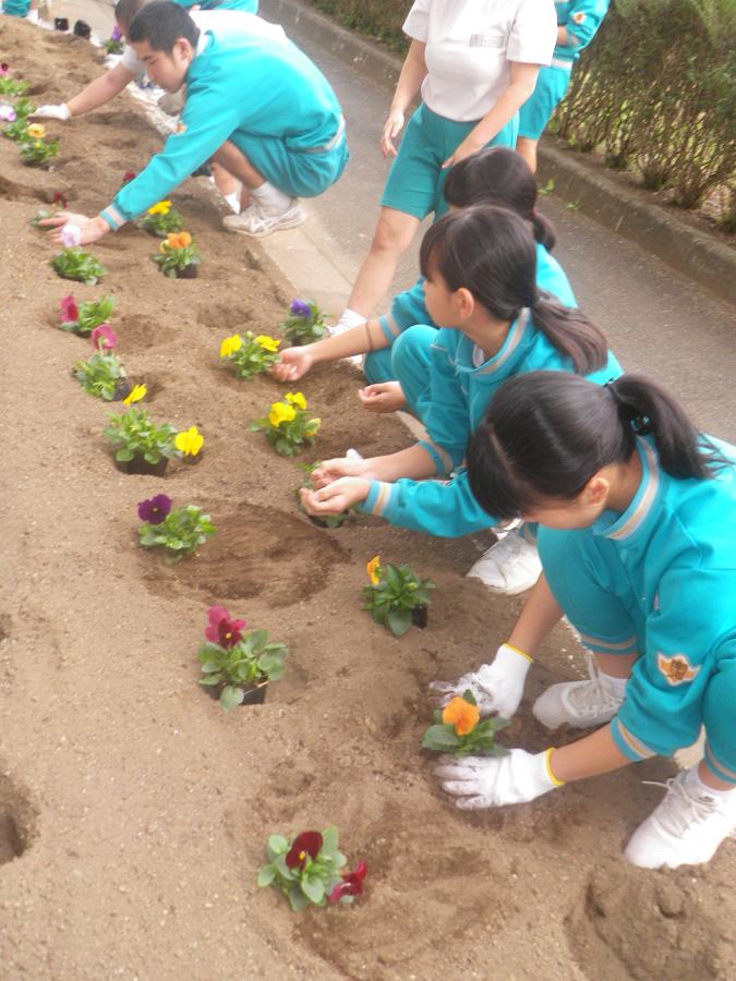 10月17日(水)放課後、全校生徒で秋の花植えを行いました。10月中には大規模改修もほぼ完了する予定で、これからの季節は花いっぱいの環境で生活することができると思います。作業する生徒の表情もうれしそうでした。