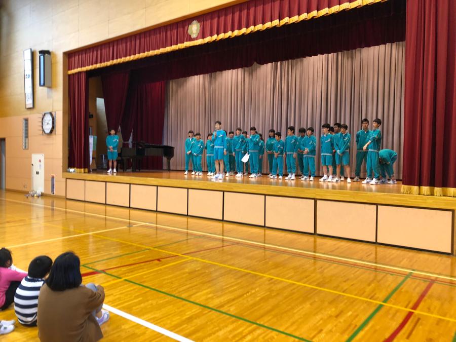 10月23日(火)、小中交流として、3年生がクラスごとに分かれて各小学校に行き、合唱の発表と小学生との交流を行ってきました。薬師寺小での様子を紹介します。小学生と楽しくふれあっていました。