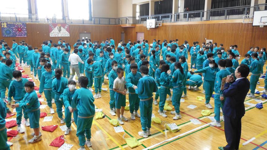 11月26日(月)、2年生の英語の授業では、小中連携教育の一環として、吉田西小学校の児童の英語の発表を、リアルタイムで映像と音声でやりとりするという取り組みを行いました。吉田西小学校の児童が英語で「My twon」の発表を行い、中学生が映像で発表を聞き、感想を返しました。教育機器の発達により、英語の活用や発表への関心が高まると思います。まだ、試行の段階ですが、積極的に活用できたらと思います。