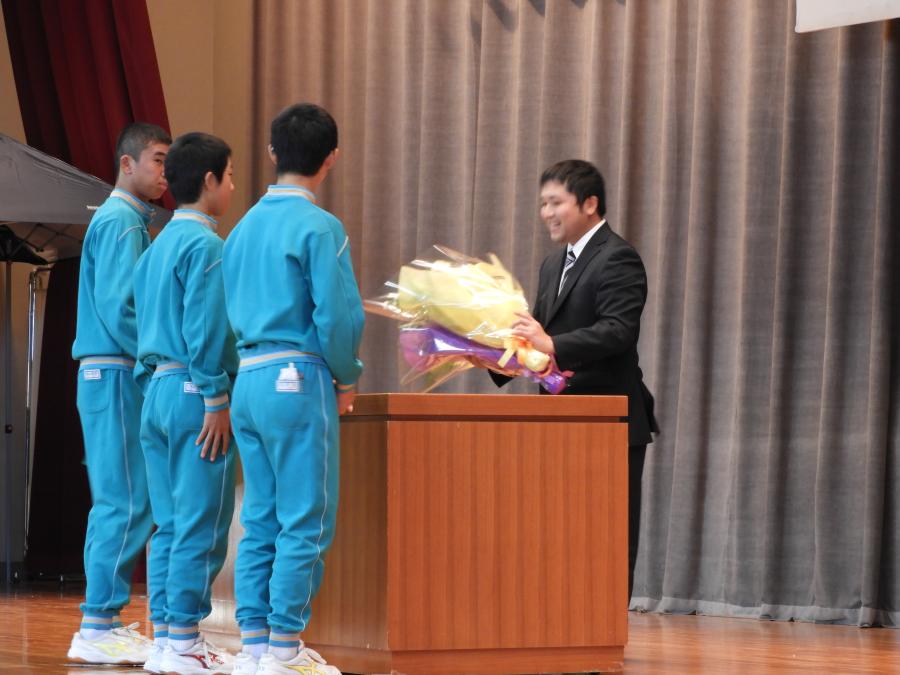 11月30日(金)、放課後に永島先生の離任式を行いました。永島先生には、6月末から約5ヶ月お世話になりましたが、昨日で本校の勤務を終わり、今月からは、他校での勤務となります。全体の離任式の後も、副担任としてお世話になった1年生、国語の授業でお世話になった2年生がそれぞれに、お別れの会を開き、名残惜しい日になりました。